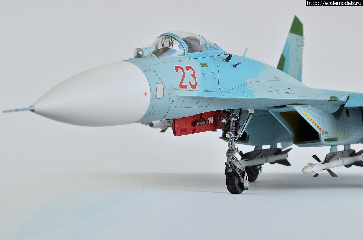 Kitty Hawk 1/48 Су-27П 23(красный) аэр. КРЫМСК Приветствую Всех и Доброго времени суток уважаемые коллеги по цеху и гости сайта. Хочу предложить вашему вниманию работу модели самолета Су-27П в 1/48-ом масштабе от китайской модельной фирмы KITTY HAWK . За прототип был взят борт.№23 (красный) аэродрома "КРЫМСК". По сборке данного набора хочется отметить нормальную стыкуемость деталей и агрегатов планера, в принципе все стыкуется без ступенек и щелей, что очень порадовало !!! Окрашена модель нитро-красками , тона разводил сам руководствуясь фотографиями из интернета.На мотогондолы были применены Bare metal Silver от Tamiya , и АКАН 66018 жженый металл( коричнево-вишневый). Радиопрозрачные поверхности законцовок килей и обтекатель конуса станции белая также нитра . Шины колес шасси нитра черная , диски АКАН зеленый(выцветший). Сопла двигателей окрашены Dark Iron от Mr.Color тонирующие пигменты АКАН и пудреницы от TAMIYA. Декаль от проекта "НАРОДНАЯ ДЕКАЛЬ" спасибо Георгию за то что
