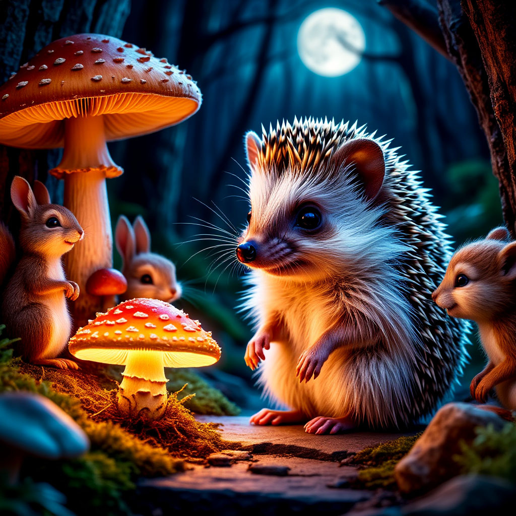 Когда первые лучи рассвета позолотили верхушки сосен, Тимоша почувствовал приятную усталость и необычайную ясность в голове. Он осторожно взял грибок. Тот был прохладным на ощупь. Но стоило ёжику прикоснуться к скрытой кнопке, как...