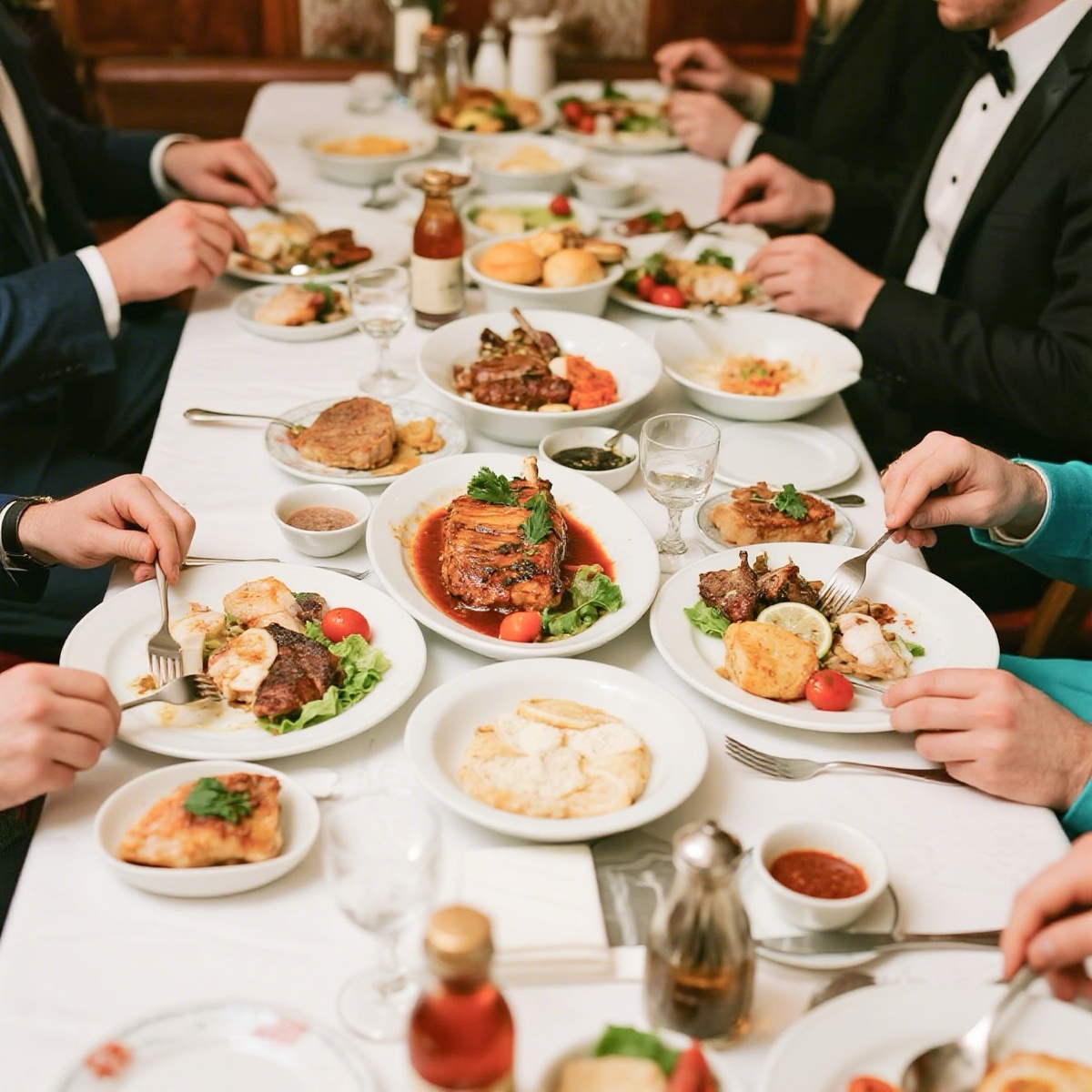 Валентина Петровна растерянно смотрела, как исчезают блюда, которые должны были достаться всем гостям. Креветки смели за минуту, салаты расхватали мгновенно. Официанты не успевали подносить новые порции.