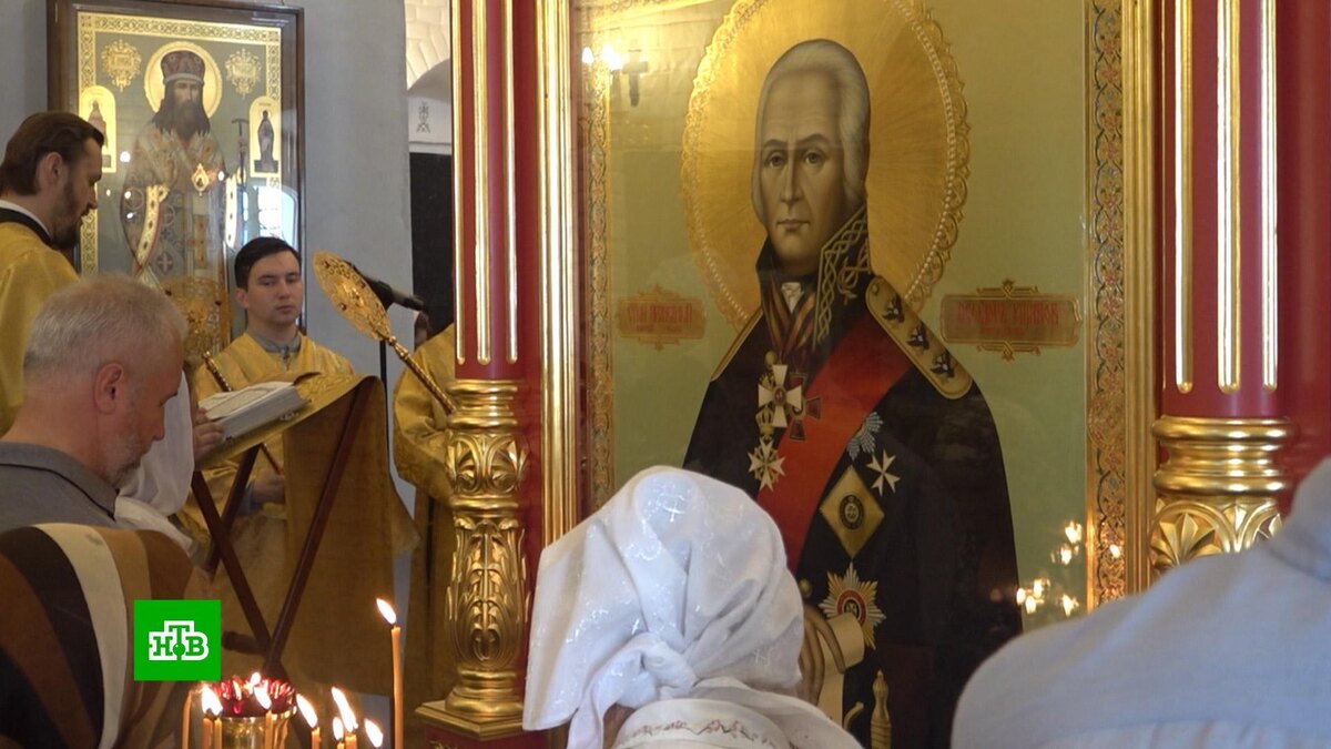 В местный храм Богоявления, где собрана коллекция уникальных реликвий, в том числе редкие иконы и ценная церковная утварь, сегодня передали личный молитвослов адмирала. Кульминацией праздника стал концерт. Перед зрителями выступили оркестр военно-морского флота и Ушаковский хор Русской православной церкви.