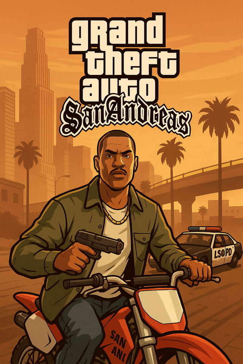 Когда я думаю о том, какая игра действительно сформировала меня как геймера, перед глазами сразу встаёт GTA: San Andreas. Не потому что она просто была крутая, а потому что она была своей. Знаешь, такой, будто сделана лично для тебя. С душой, с характером, с уличной философией. Именно в неё я играл ночами напролёт, забывая поесть и даже поспать 😄 Помню, как запускал игру на старом ПК, и первое, что услышал — голос Фрэнка Тенпенни. Сильный, властный, пугающий. Это был голос Сэмюэля Л. Джексона! Потом — диалог, велосипед, солнечный Лос-Сантос. И ты не просто катаешься — ты живёшь в этом городе. Ты — Карл Джонсон, или просто CJ. Возвращаешься домой после смерти матери и сразу погружаешься в уличную драму. CJ — не супергерой. Он парень с района, который хочет вернуть семью, поднять улицу, найти своё место в этом хаосе. И именно это делает его таким близким. У него нет роскоши, нет денег, нет славы. Всё, чего он добивается — он делает сам. Открываешь карту — и просто офигеваешь. Лос-Сантос