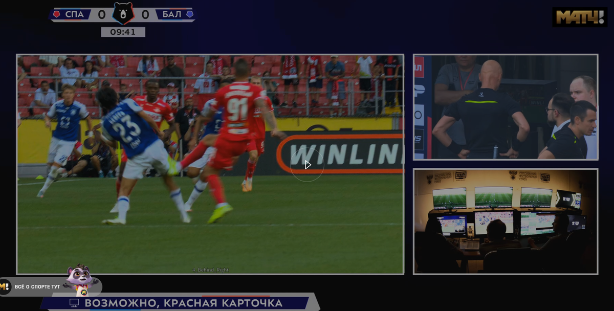 1. Антон Заболотный. Антон так "старался" себя проявить на поле и был так "заряжен" на борьбу, что в первом же моменте полетел прямой ногой на соперника и попал шипами ему в бедро. Сначала показалось, что контакт был минимальный тем более, что Карасёв даже желтую карточку показывать не стал. Но как только появился титр "Возможно красная карточка" стало тревожно. А когда Карасёв пошёл к монитору и ему первым делом включили "стоп-кадр" контакта, стало ясно, что будет удаление. Хотя Черданцев с сотоварищем по трансляции и твердили, что по "стоп-кадру" оценивать момент ни в коем случае нельзя, всё было понятно. Я как и Станкович конечно сразу закипел, опять беспредел судейский!!! И так и считал до конца первого тайма, пока не показали момент с засученными шортами Бевеева, где на бедре видны кровавые следы от шипов, значит там было совсем не "вскольз", а ближе к стоп-кадру и всё было по делу. 2. Маркиньос-Станкович. Объединил двоих в один момент, так как виноваты оба, один глупо фолил наде