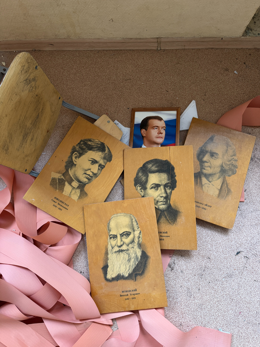 Перевернутые стеллажи, разбросанные учебные пособия, а под ногами - портреты выдающихся ученых, писателей и политиков. Здесь больше никогда не прозвенит ни первый, ни последний звонок. Школьное здание 1936 года постройки, расположенное в центре Москвы, освобождают от последних материальных ценностей, чтобы в дальнейшем освободить от него московскую землю и построить что-то более современное. Ученикам и их родителям волноваться не стоит - через дорогу уже возвышается новое здание школы на 300 мест, двери которого должны открыться к началу учебного года. Сейчас в нем вовсю кипит работа, но и старое здание в этом плане ничуть не отстает - внутри него на демонтаже усердно трудятся десятки иностранных специалистов, они "Газелями" вывозят металл, пластик и прочие материалы, в которых так нуждаются пункты приема вторсырья. Пока в школе не остались одни лишь голые стены, давайте заглянем внутри и попробуем представить, как же тут в свое время протекала жизнь. Судя по сохранившимся элементам и