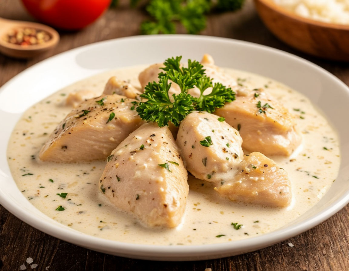 Очень нежная курочка с насыщенным соусом — готовится быстро, выглядит по-домашнему, а по вкусу как из ресторана.