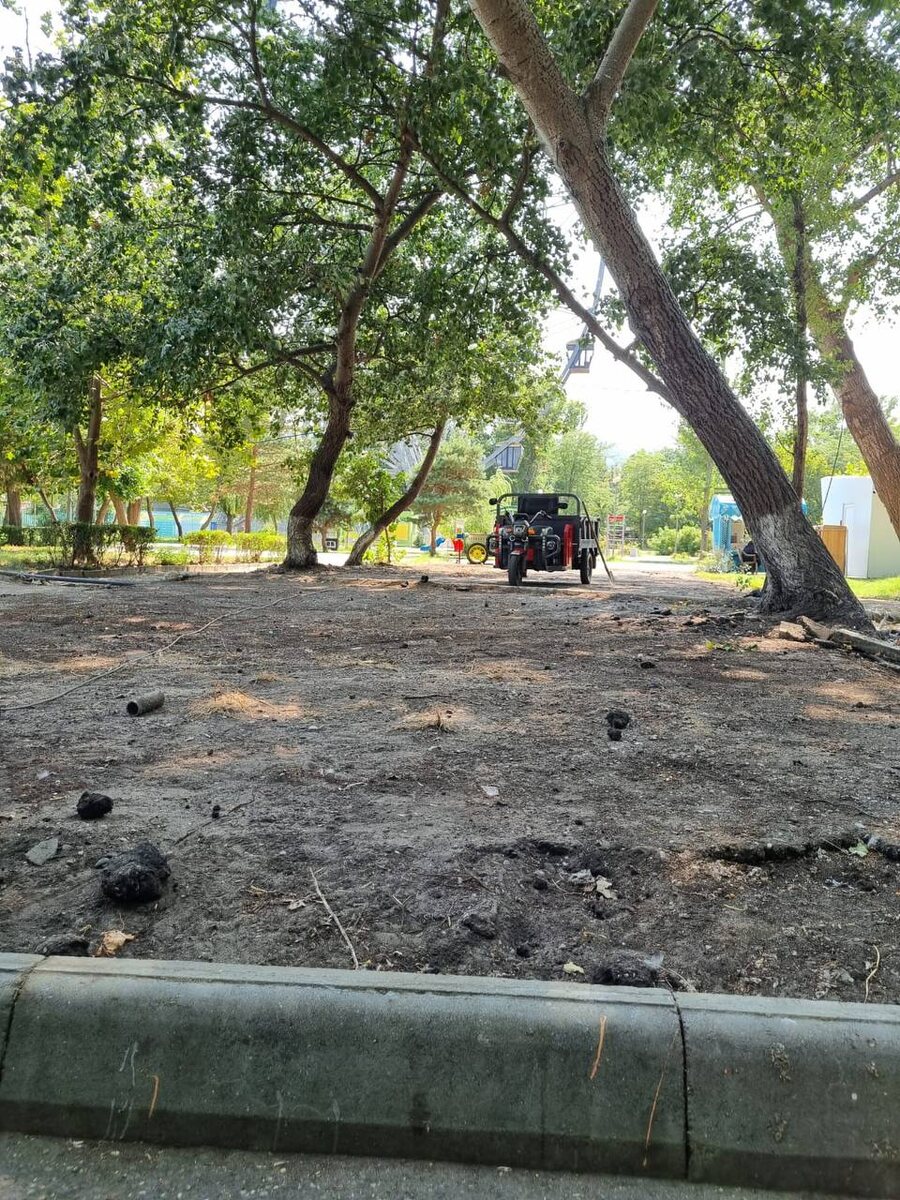 Что касается посева зелёного газона, хотим отметить, что на данный момент это представляет определённые трудности из-за бетонного основания в данной части парка.