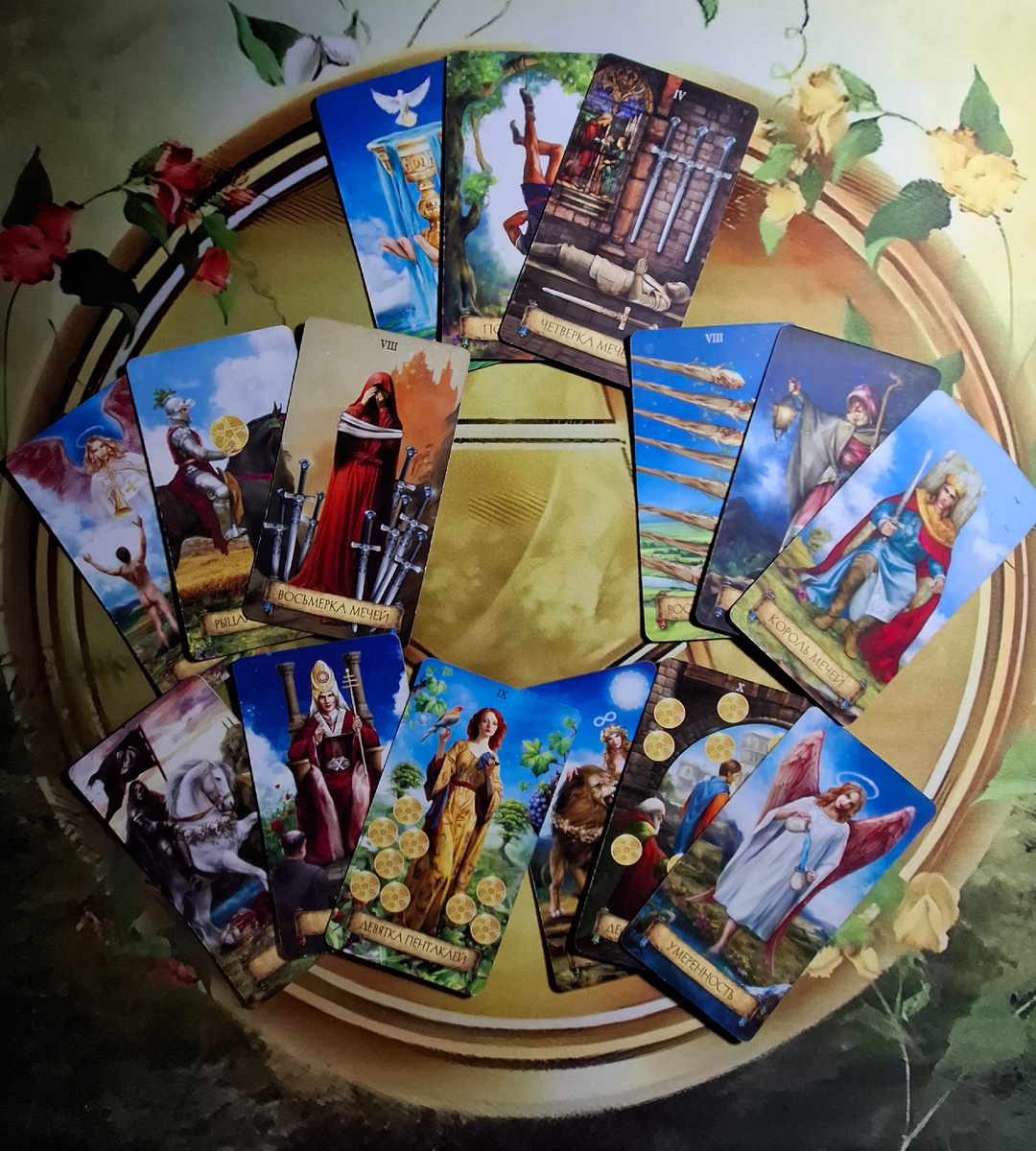 - Десятку Пентаклей — тему семьи, рода, материальной стабильности.