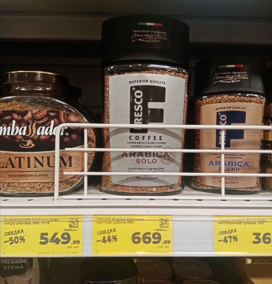 Цены округлила "маленько" в заголовке. Ну, сейчас все сами узнаете. Вышла я вечером прогуляться до магазина, вышла по делу - кофе у меня закончился, а на днях я как раз в игре магнитовской купон со скидкой 50% выиграла. А тут навстречу мне муж идет, домой возвращается. Куда ты, говорит, девица-красавица, направляешься? - Хочешь фокус покажу? - Хочу! - Ну, тогда пойдём со мной! Зашли в магазин, нашли на полке кофе, купон на который я выиграла. - Цену видишь? - Вижу. - Фотографируй и запоминай. Сказано - сделано! - А теперь пойдем на кассу самообслуживания, чтобы наглядно фокус ты посмотрел, и чтобы продавцов не нервировать манипуляциями с купонами. Пришли. Пробила кофе. Отсканировала игровой купон. Цена изменилась на 285 рублей. Муж удивляется: "Ничего себе!" Погоди, говорю, это еще не все. Сканирую карту из приложения, нажимаю списать бонусы. И цена меняется на 143,99 руб.! Вот такой фокус-покус получился! Муж удивлён, обещал наконец приложение скачать после такого фоку