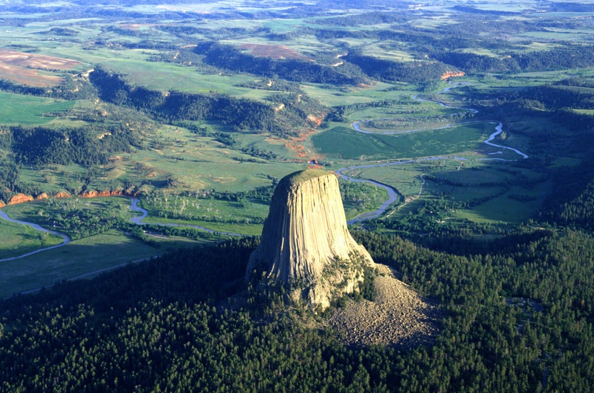 Башня Дьявола Башня Дьявола (англ. Devils Tower) в США — это знаменитый природный монолит в северо-восточном Вайоминге. Она представляет собой массивную скалу вулканического происхождения, возвышающуюся на 386 м над окружающей местностью, с общей высотой 1 558 м над уровнем моря. Своё «дьявольское» имя гора получила из-за ошибочного перевода индейского названия: изначально имя означало «Дом медведя», но было переведено как «Дом плохого бога» и позднее трансформировалось в «Башню Дьявола». Основные факты: — Девилс-Тауэр — первый национальный памятник США, статус был присвоен в 1906 году президентом Теодором Рузвельтом. — Скала образовалась в результате застывания магматического расплава (лавы), который не достиг поверхности, а затем медленно остывал, образуя столбчатую структуру из шестигранных или пятигранных колонн. — Возраст горы оценивается примерно в 60-200 миллионов лет. — Башня Дьявола имеет уникальную форму и является объектом для множества легенд и мифов, особенно у коренны