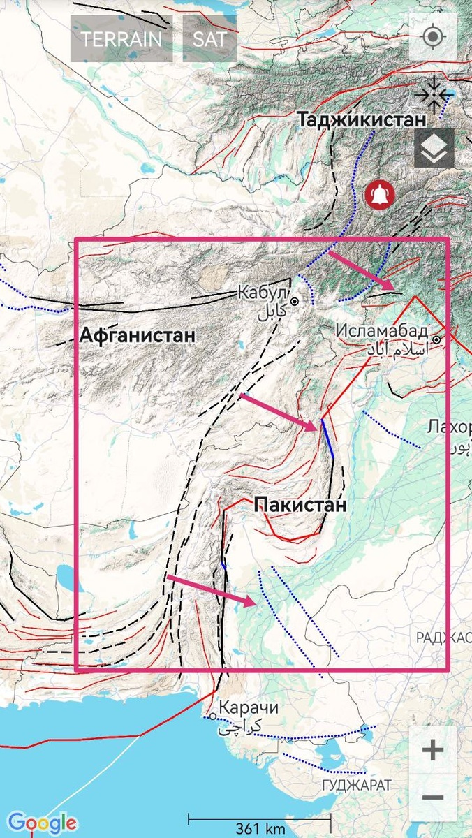 В ответ на пост Сегодня дегазация по Пакистану/Афганистану была более протяженная, дотягивая уже до М7+ ===== Today, the degassing in Pakistan/Afghanistan was more extensive, reaching up to the M7+