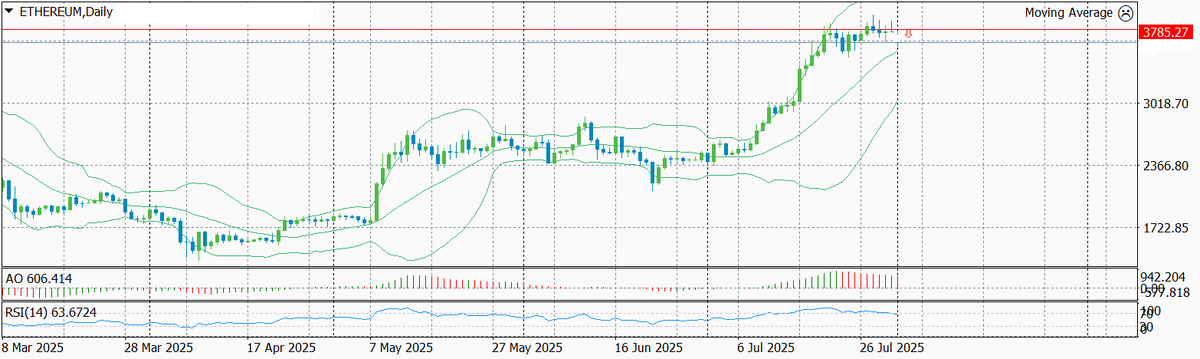 Открываем шорт эфириума от текущего уровня 3785 (31.07.2025)
