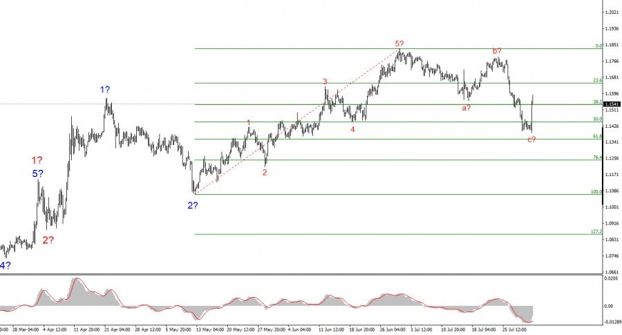 https://basechop.ru/wordpress/?p=52221 Волновая разметка 4-часового графика для инструмента EUR/USD не меняется уже несколько месяцев. Построение повышательного участка тренда продолжается, а новостной фон продолжает поддерживать по большей части не доллар. Торговая война, начатая Дональдом Трампом, была призвана увеличить поступления в бюджет и убрать дефицит торгового баланса. Однако этих целей добиться пока не удается, торговые сделки подписываются «со скрипом», а «Один большой закон» Трампа увеличит государственный долг США в ближайшие годы на 3 трлн долларов. Рынок крайне невысоко оценивает результаты первых 6 месяцев Дональда Трампа, а в его действиях по-прежнему видит угрозу американской стабильности и благополучию. В данное время инструмент продолжает построение волны 4 в 3, которая может принять трехволновой вид. Если это действительно так, то в ближайшее время эта волна может завершить свое построение. Однако новостной фон играет значительную роль в построении коррекционного