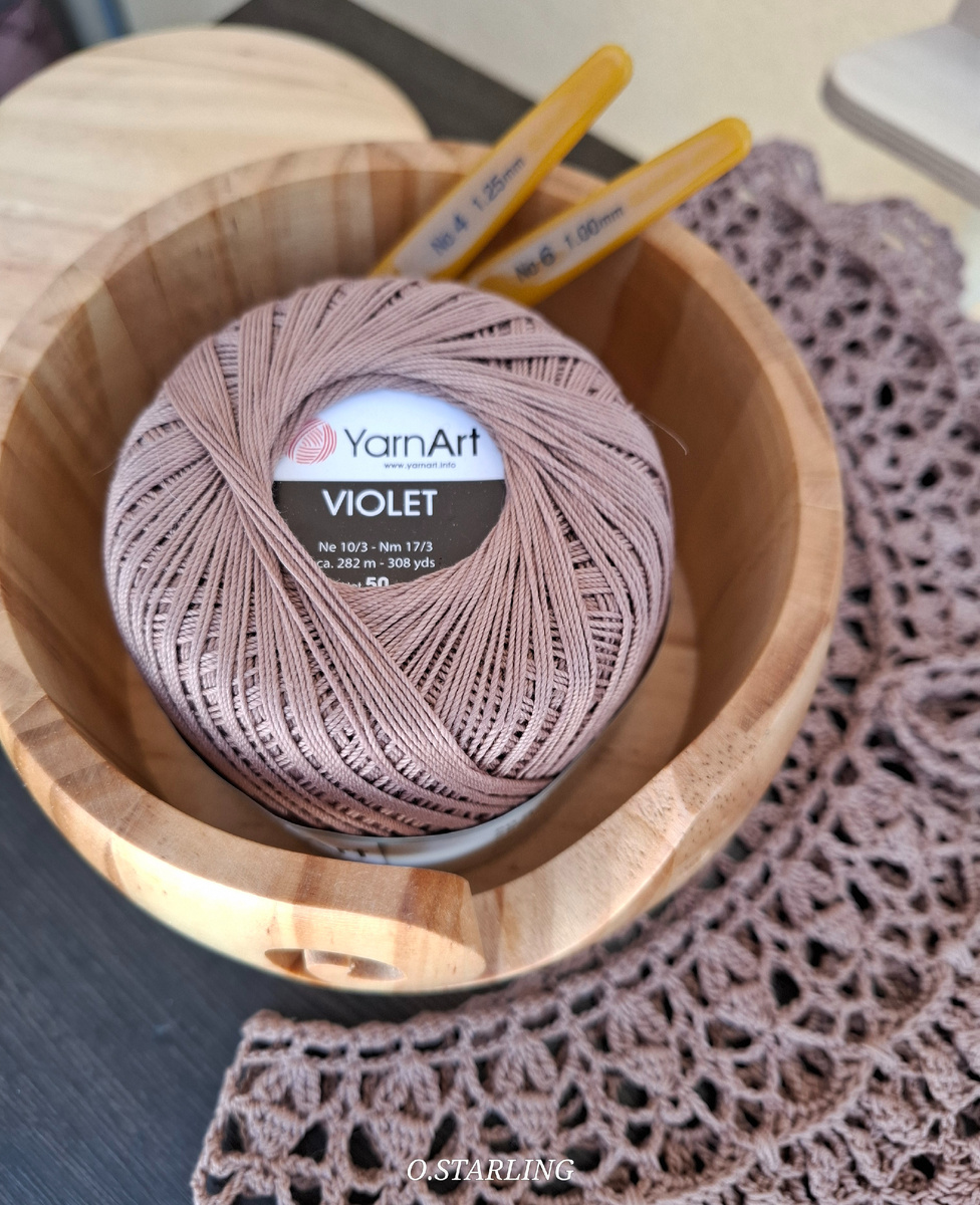 Работать с YarnArt Violet – одно удовольствие! Нить гладкая, прекрасно скользит по крючку, не расслаивается и не путается. Петли ложатся ровно, что позволяет создавать четкие и аккуратные узоры даже в самых сложных ажурных техниках. Это очень важно для таких деликатных изделий, как кружева. Расход пряжи экономичный, так как нить достаточно тонкая (50 г / 282 м). 🩶Готовое изделие: