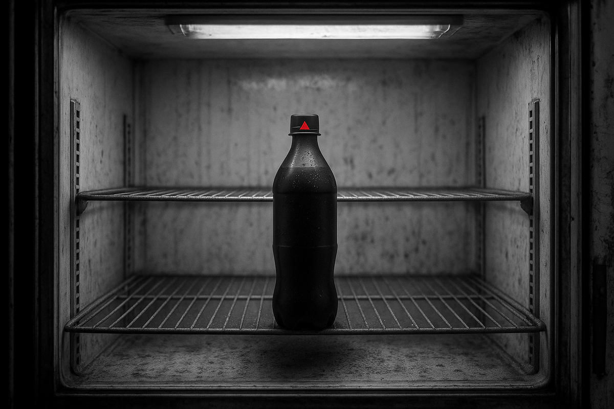 Это перевод истории с Reddit Я не думал, что один-единственный глоток изменит всё. Началось на заправке недалеко от Денвера. Я ехал через всю страну, чтобы начать жизнь заново: новая работа, новый город, никаких хвостов. Лишь я, дорога и радио. Я остановился размяться и купить что-нибудь попить. Холодильник был наполовину пуст — его, похоже, не пополняли уже неделю. В глаза бросилась одна бутылка: чёрный пластик, никаких наклеек, только маленький красный треугольник на крышке. Ни названия, ни состава. Один треугольник. Я должен был насторожиться. Но напиток был холодный, а жажда сильная. Я открутил крышку и, поднеся бутылку к губам, уловил странный запах — слишком приторно-сладкий, словно гниющие фрукты, залитые сиропом от кашля. И всё же я сделал глоток. Вкус оказался неправильным — металлическим, горьким, почти… затхлым. Меня стошнило, я выплюнул жидкость на пол и выронил бутылку. Кассир уставился на меня так, будто я швырнул гранату. — Ты что творишь? — рявкнул он, выскакивая из-за
