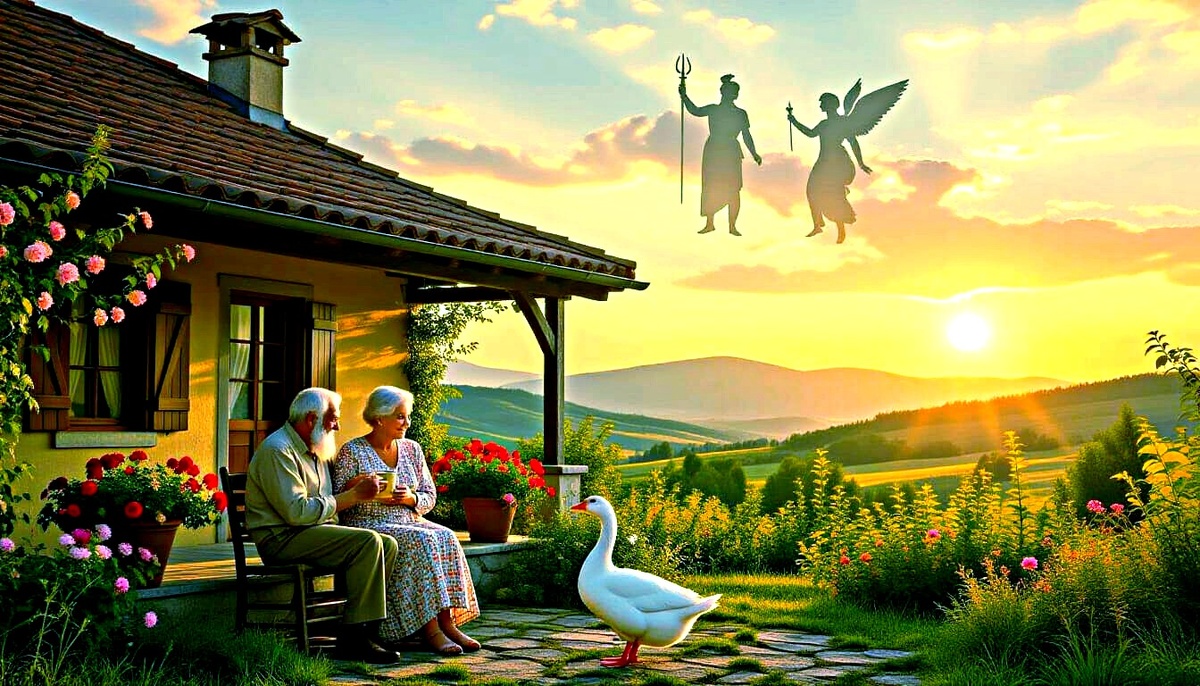 Они были бедны. Не жалкие, не оборванные – просто скромные. Их земля давала ровно столько, сколько нужно двум старикам, чтобы не быть голодными. Но дом их был полон: кошка, которая считала себя богиней, пёс, который считал себя стражем Олимпа, и птицы, что строили гнёзда под самой крышей.