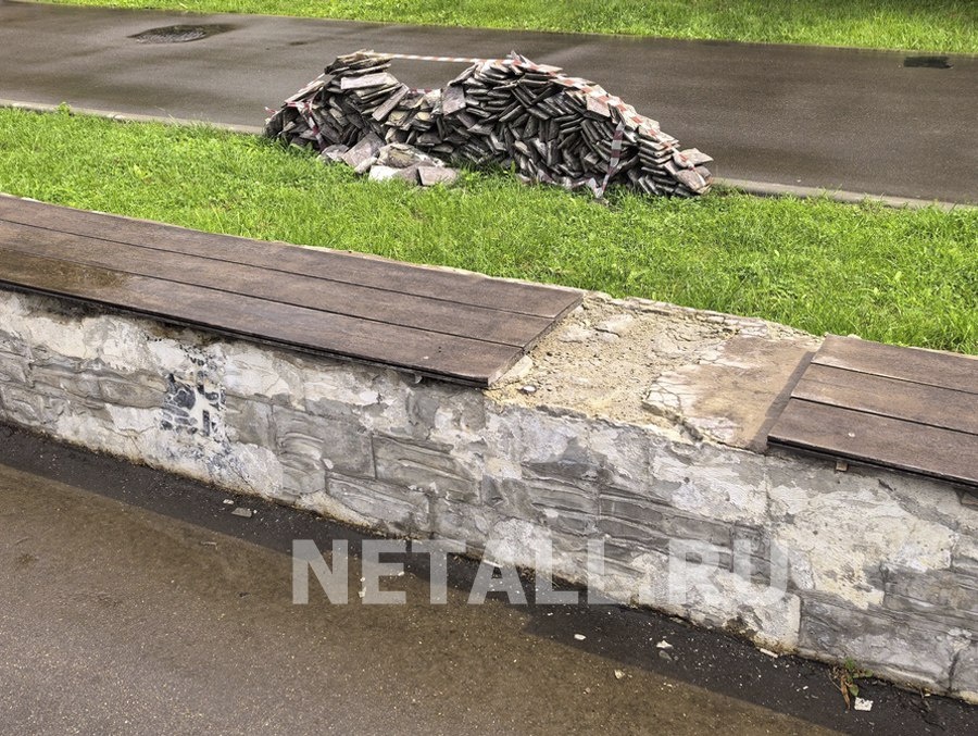 Фотофакт: с парапета у магазина «Десяточка» в 4-м микрорайоне демонтировали облицовочную плитку Ее установили в рамках благоустройства пешеходной зоны всего два года назад. Фото: netall.ru подписаться / обсудить в чате