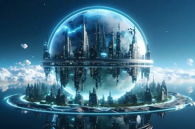 Футуристический взгляд на высокотехнологичную планету Земля AI-сгенерированное и