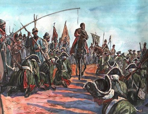 В прошлой статье говорилось, что под знамëна Пугачëва встало примерно сто тысяч человек, но ... Противоборствующая сторона-правительство Екатерины - не была дискредитирована перед народом внутренних и западных губерний. Центральная власть в России была крепка, то есть силы, противоборствующие Пугачëву были велики. Тем не менее, оказать сопротивление Пугачëву, опираясь только на внутренние резервы , Екатерина не могла, хотя в ход было пущено всë. Против Пугачëва вооружили даже не христиан и чужаков -пленных турок. Тогда Екатерина срочно заключила мир с Турцией, прервав дотоле успешную войну с ней, и двинула с турецких границ против Пугачëва армии во главе с такими прославленными полководцами, как Суворов и Румянцев. В сентябре 1774 года Пугачëва предали казаки и к весне 1775 года обезглавленная "народная" армия уже не могла оказывать сопротивление. Победы русской идеи народ так и не дождался.