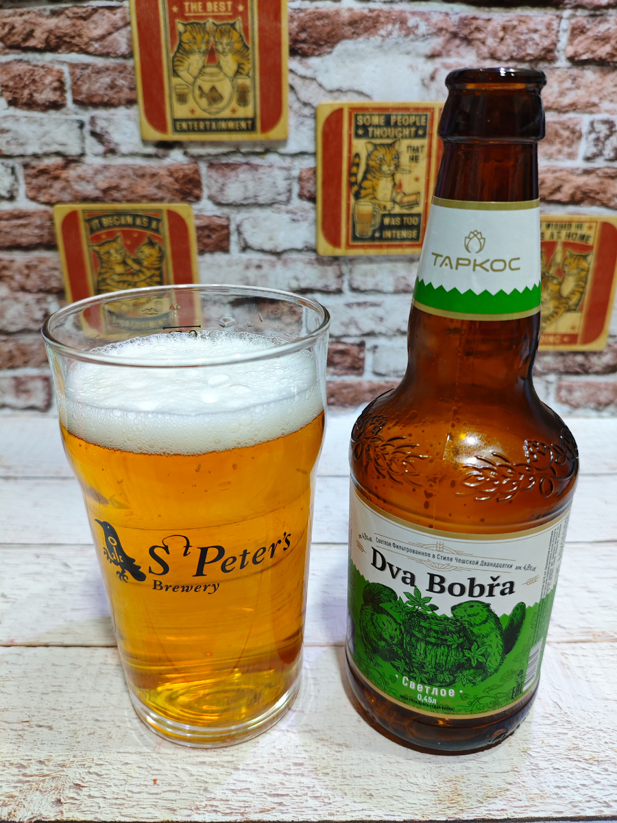 Пиво светлое фильтрованное пастеризованное Два Бобра. Изготовитель: ООО "Пивоварня", Воронежская область. На сайте пивоварни можно прочитать следующее описание: Солодовое пиво с чистым насыщенным вкусом, легким фруктовым ароматом, приятной горчинкой и солодовым послевкусием. ********************************************************************************** Плотность: 12%. Состав: вода подготовленная (исправленная), солод пивоваренный ячменный, хмель. Срок годности: 9 месяцев при температуре хранения от 0℃ до +20℃. С даты розлива моей бутылки прошло 4.5 месяцев. ********************************************************************************** Пенка небольшая и сдувается за считанные секунды. Аромат лёгкий солодово-травянистый. Карбонизация умеренная. Во вкусе сладковатый солод с небольшим, но выраженным травяным горьковатым привкусом. Умеренная солодовая кислинка на конце глотка. Пиво крайне лёгкое, но как будто бы совсем в водянистость не уходит (хотя и на грани). Послевкусие с травя