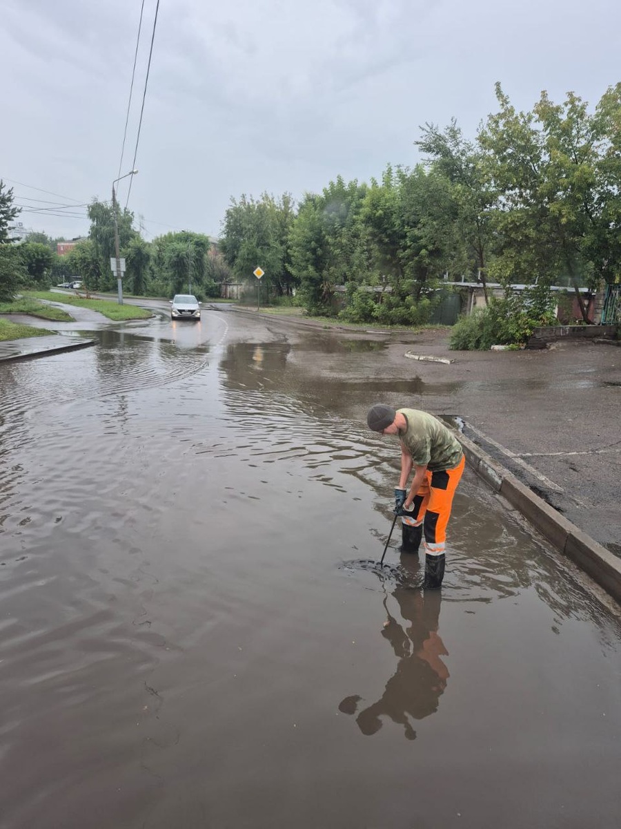 После очередного ливня в Красноярске работают 12 единиц откачивающей техники