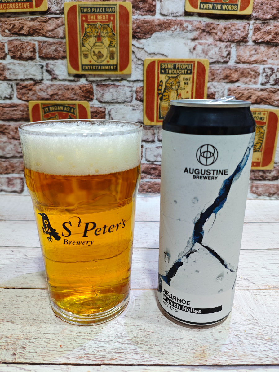 Пиво в стиле Munich Helles. А сварила его Augustine Brewery (ООО "Августин") в городе Тула Тульской области. Описание читаем прямо на этикетке: Освежающее и утоляющее жажду пиво, с таким же говорящим названием. Очень гармоничное, легко пьющееся, но не лишённое породистого характера. Сварено из дорогого и качественного сырья, с хорошей выдержкой в танке при низкой температуре. ********************************************************************************** Плотность: 12%. Горечь: 18. Состав: вода, солод ячменный светлый пивоваренный, хмель, пивные дрожжи. Срок годности: 180 суток при температуре от +2℃ до +10℃. 20 суток при температуре от +11 до +20℃. С даты розлива моей банки прошло примерно 3 месяца. На момент покупки пиво стояло в холодильнике. ********************************************************************************** Пена на месте; стойкость средняя и полностью раствориться не спешит. Аромат слабый солодовый как будто бы с лёгким оттенком картонки (не критично и скорее при
