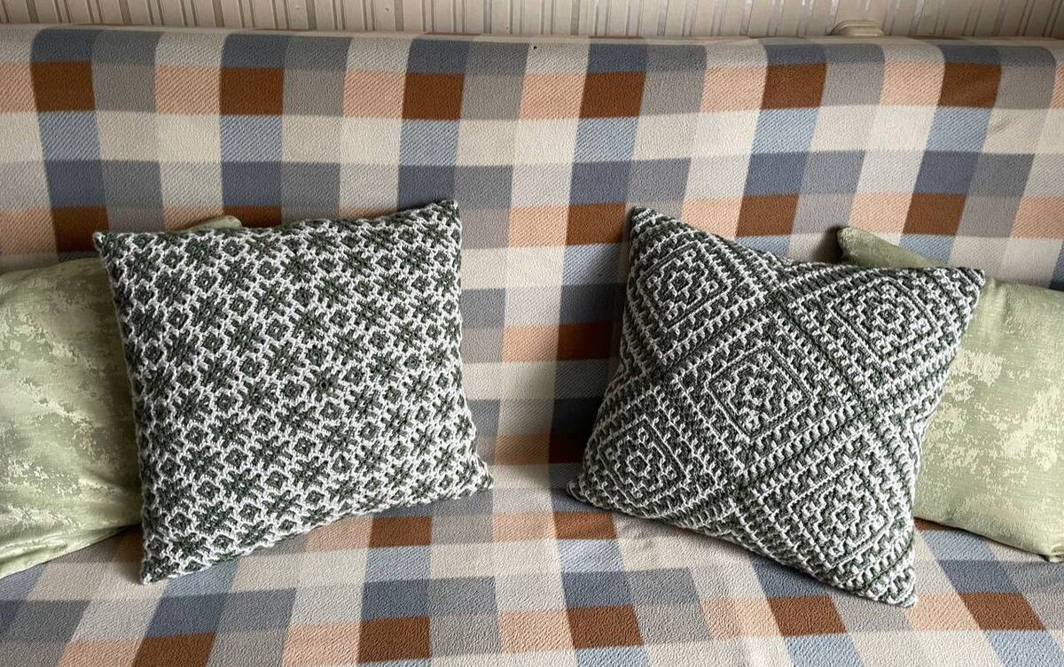 Ирина: «Комплект подушек на даче, пряжа «Народная» от Пехорки, крючок 4».
