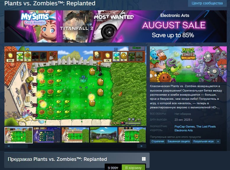 Ремастер Plants vs Zombies выйдет в Steam 23 октября — предзаказы уже открыты! В культовую игру про цветочки и живых мертвецов завезут кучу нового контента: • Обновлённый графон и интерфейс • Кооператив с друзьями • PvP-режим с возможностью играть за зомби • Хард-мод и новые мини-игры. Цена ностальгии — около 1400 рублей.