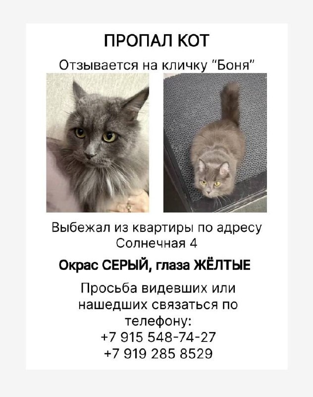 Помогите найти кота, Солнечная 4