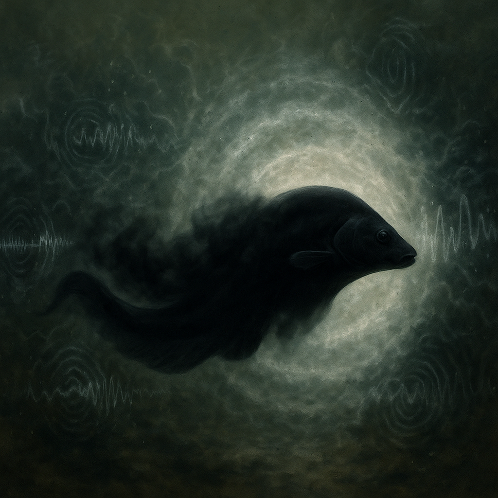 Я сначала подумал, что это байка. Ну, вроде как — «в Африке есть ящерица, которая умеет телепортироваться». Или: «у паука под капотом Wi-Fi-радар». В общем, из той серии. Но потом наткнулся на видео. Чёрная тень скользит в мутной воде. Вокруг — десятки сигналов, электрических импульсов, помех. А он… выключает всё. Не воду. Не соседей. Себя. Он буквально отключает шум, чтобы не сойти с ума. И делает это так, как будто в этом нет ничего особенного. Ну да, устал — и выключился. Хочешь, тоже так? Apteronotus albifrons. Или, если по-человечески — чёрный призрачный нож. Имя звучит как будто он бродит по канализациям Токио, охотясь на призраков. На деле — обычная рыба. Ну как обычная… Вы когда-нибудь встречали рыбу, которая видит током? Вот и я — нет. Она живёт в Амазонке. В воде — мрак, ил, другие рыбы, шум, бесконечные колебания. Зрение почти бесполезно. Зато у неё есть встроенный «сканер». Не шутка. Рыба создаёт электрическое поле вокруг себя и чувствует всё, что в него попадает. Как ул