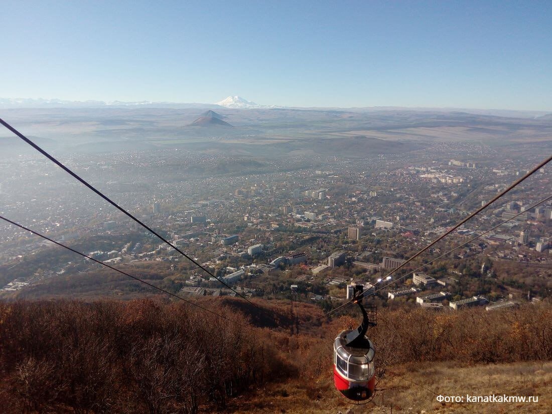 Канатная дорога в Пятигорске Канатная дорога в Пятигорске была построена в 1971 году, по уникальной безопорной технологии. Она сама является интереснейшим экспонатом инженерных решений и наглядным пособием действия основных законов физики. За 2,5 – 3 минуты пассажиры преодолевают расстояние в 964 м. Дорога работает по принципу маятника, вагончики снизу и сверху выходят одновременно и встречаются в самом центре, скорость их движения одинакова. У нижней станции канатной дороги в 2024 году благоустроили территорию и теперь здесь есть несколько цветочных клумб, фотозона и аллея зонтиков. Подсветку сделали необычной. На верхней станции канатной дороги, на горе Машук, находятся смотровые площадки с биноклем, в который можно разглядеть не только город, нои Эльбрус и другие горы Главного Кавказского хребта. Сразу при выходе с канатной дороги увидите вблизи телевышку. Отсюда она не покажется такой маленькой, как от подножия горы. Всё-таки её высота с 35-этажный дом. На вершине Машука установ
