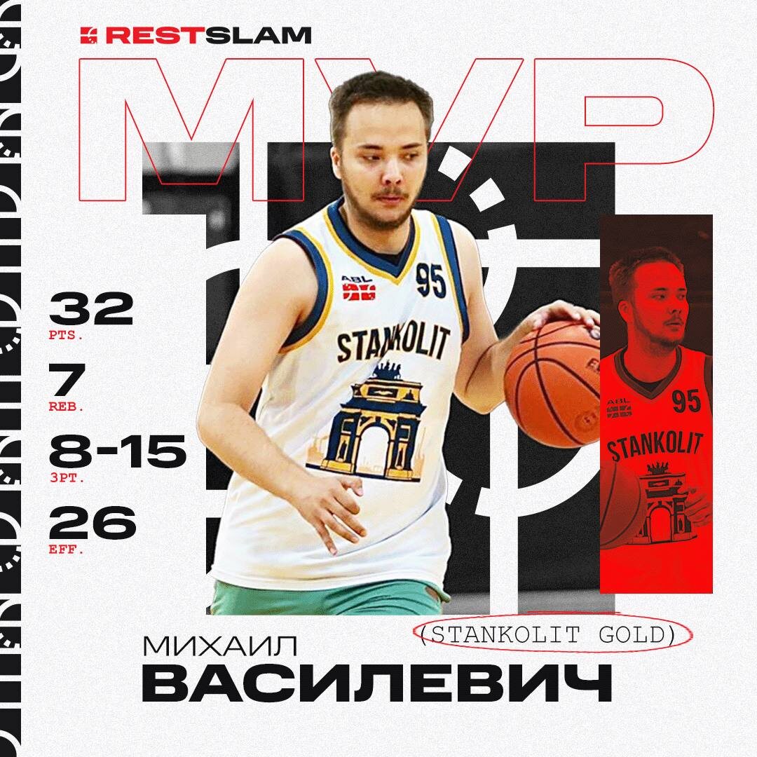 MVP ABL Rest Василевич Михаил (Stankolit Gold) vs Team United Rest Slam 47:39 32 очка, 7 подборов, 8/15 3-очковые, 26 эффективность Триумфальное возвращение Василевича, примерившего на себя игровую майку команды, которую он до этого тура только тренировал. Михаил вернулся в Станколит, чтобы помочь команде пробиться в плей-офф, и благодаря его игре команда приблизилась к этой цели. В матче с Team United у обеих команд не клеилась игра в нападении, но Василевич, как неиссякаемый колодец чудес, продолжал дарить команде надежду на победу непрекращающимся градом трехочковых. Играющий тренер Станколита набрал 21 из 27 очков команды во второй половине и помог одержать ключевую победу в борьбе за выход в плей-офф. 1️⃣@ABL Moscow