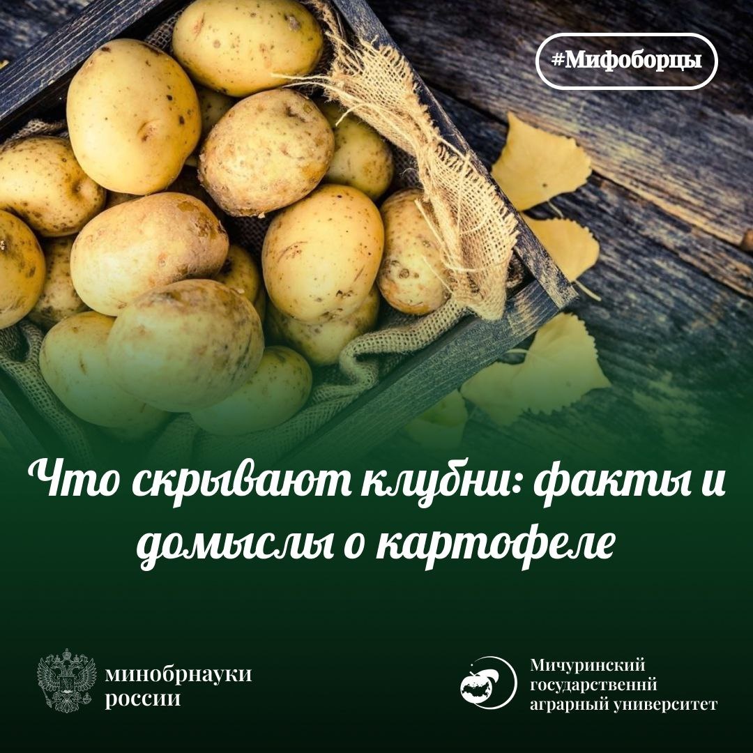 Сегодня в нашей рубрике "Мифоборцы" мы беремся за один из самых популярных и, чего уж там, противоречивых овощей на наших столах – картофель! 🥔 Этот скромный клубень прочно вошел в нашу жизнь, став основой для бесчисленного множества блюд, но вместе с тем породил много слухов и домыслов. Готовы ли вы узнать, что на самом деле таит в себе этот всеми любимый корнеплод? Тогда вперед к разоблачению картофельных тайн! #МинобрНауки #МичуринскийГАУ #Мифоборцы