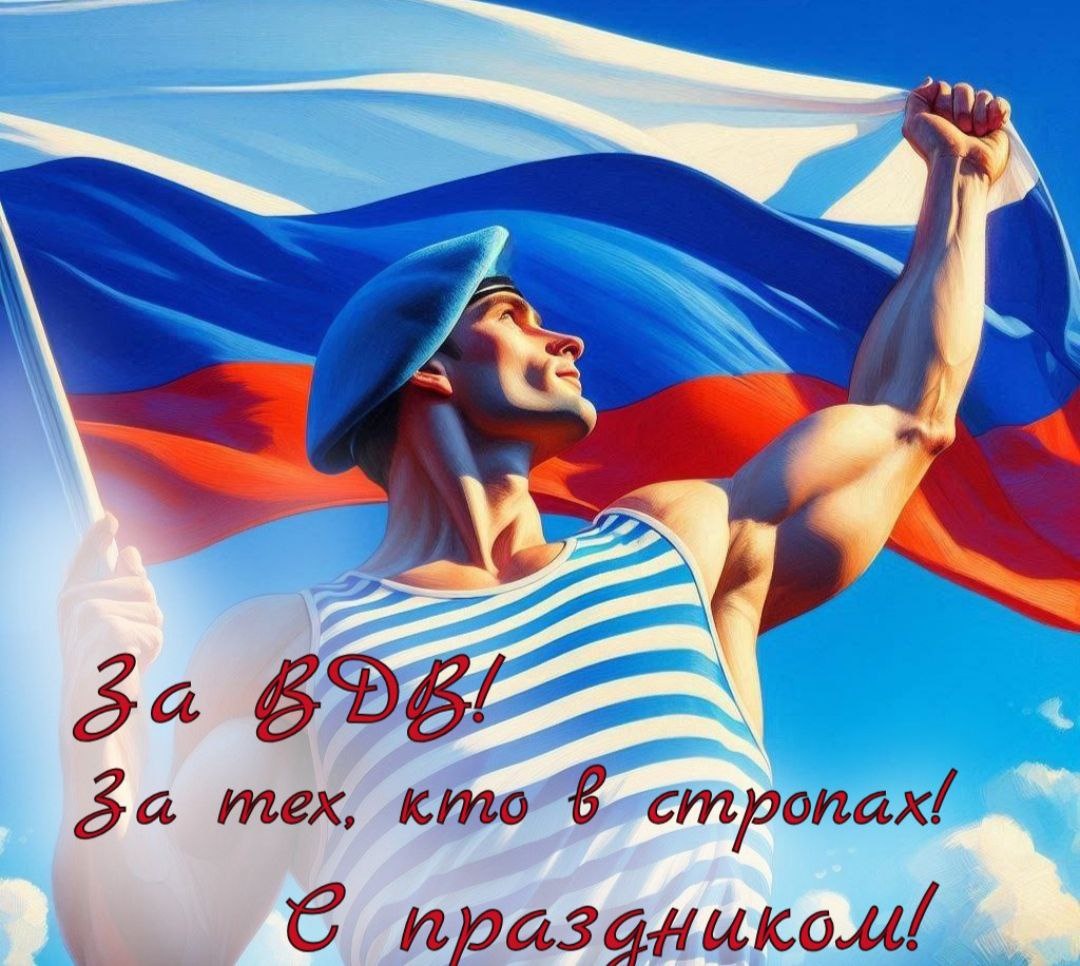 С Днем Воздушно-десантных войск! 🎉💙 Поздравляем всех десантников, ветеранов и тех, кто причастен к этой славной традиции! Этот день — символ мужества, отваги и профессионализма. Вы — настоящие герои, которые готовы в любую минуту встать на защиту Родины. Пусть в ваших сердцах всегда горит дух патриотизма, а в жизни будет много радости, здоровья и верных друзей! С праздником, братья-десантники! 💪✈️🎖️