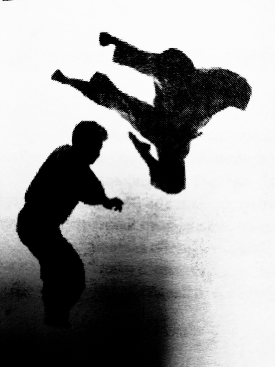 Очередной наш поединок, а Русик гораздо выше меня, и тяжелее на 20 кг. Бились на небольшой скорости, используя все удары. И тут Руслан нанёс мне резкий удар ногой с разворота, ура маваши-гери. И попал в переносицу. Хрусь. Нос в сторону. Кровь льёт ручьем. Я руками как-то вставил нос на место, как мне казалось. Крови потерял много. А утром экзамен.