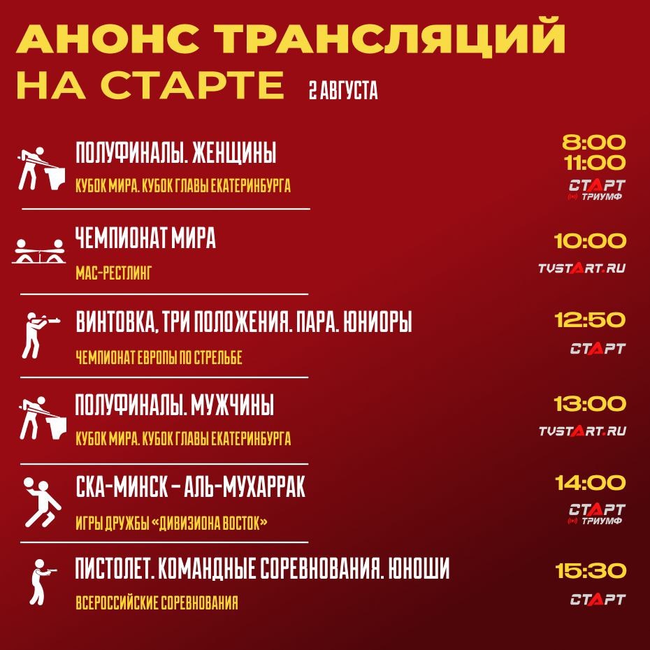 😎 Множество трансляций для вас в субботу! Начнем с бильярда – Кубок мира как никак. А дальше у нас стрельба, футбол и старт международного гандбольного турнира. Про мас-рестлинг тоже не забудьте. Обязательно заходите на TVSTART.RU поддержать наших ребят 🤩 🛒 Наше приложение в Google Play 💙 Наше приложение в RuStore 🛒 Наше приложение в App Store