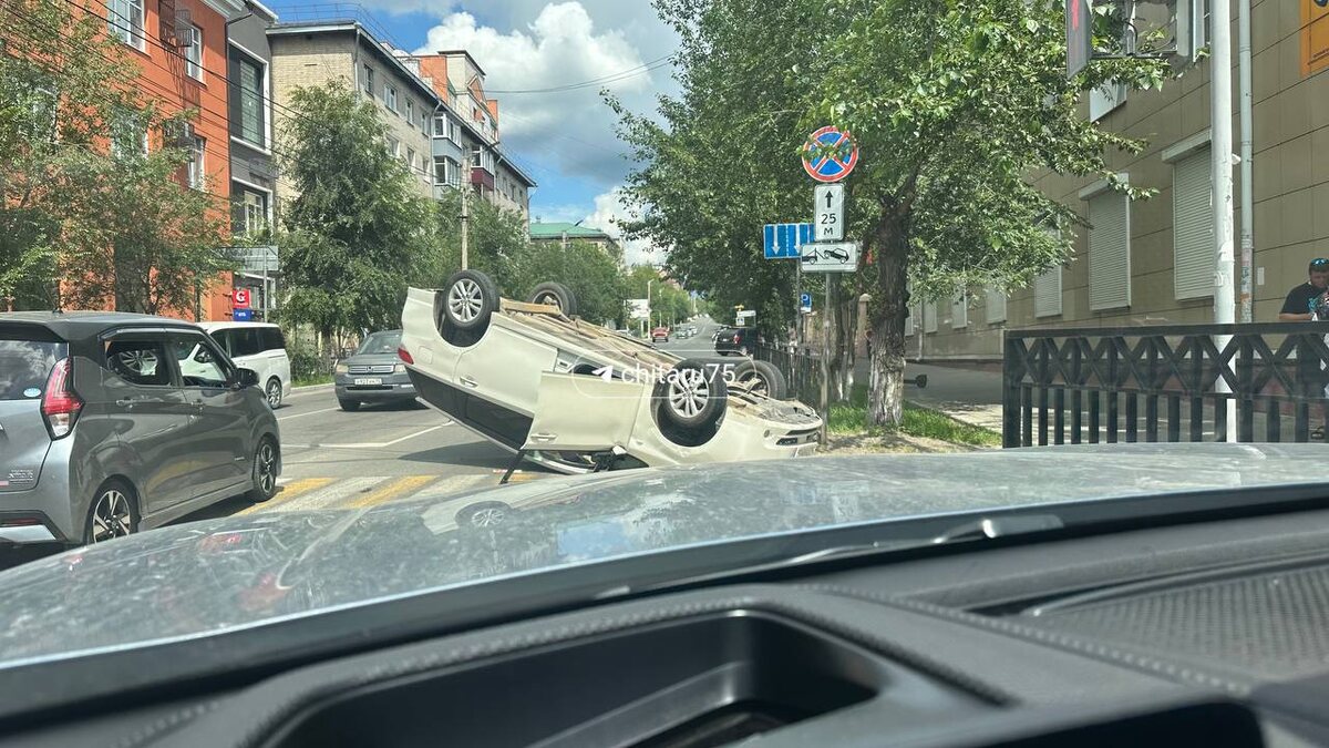 Машина перевернулась в центре города.