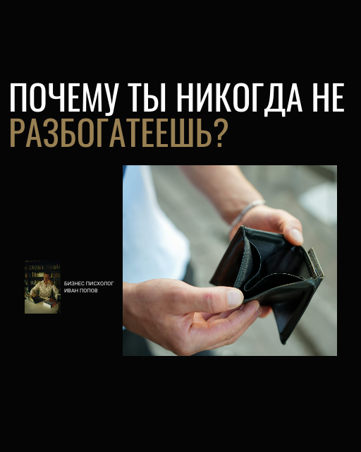 Реальная история из практики... Звонит мне мужик. Голос дрожит: "Иван, я схожу с ума! Мне 35 лет, получаю 40-50К, а должен был уже давно зарабатывать нормально. Что со мной не так?" Приходит на консультацию. Рассказывает: 💸 ЕГО АД: Закончил проект, пришли 200К - тут же потратил на всякую хрень за неделю Пригласили в перспективный бизнес, все шло отлично - внезапно "передумал" и вышел Предложили руководящую должность - в последний момент нашел причины отказаться Хотел поднять цены на услуги - руки опускались каждый раз Клиенты готовы платить больше - он сам сбивает цену А ЕЩЕ ХУЖЕ: Постоянный страх что денег не хватит Панические атаки при крупных тратах Жена в шоке: "Ты умный, талантливый, а мы живем как нищие!" Сам себя ненавидит за слабость Завидует всем кто зарабатывает больше 🧠 КОПАЕМ ГЛУБЖЕ... В гипнозе вскрылся целый букет блоков: ОТ ПАПЫ: "Не высовывайся! Большие деньги - большие проблемы!" ОТ МАМЫ: "Мы простые люди, богатство не для нас!" ДЕТСКАЯ ТРАВМА: В 8 лет родители разве