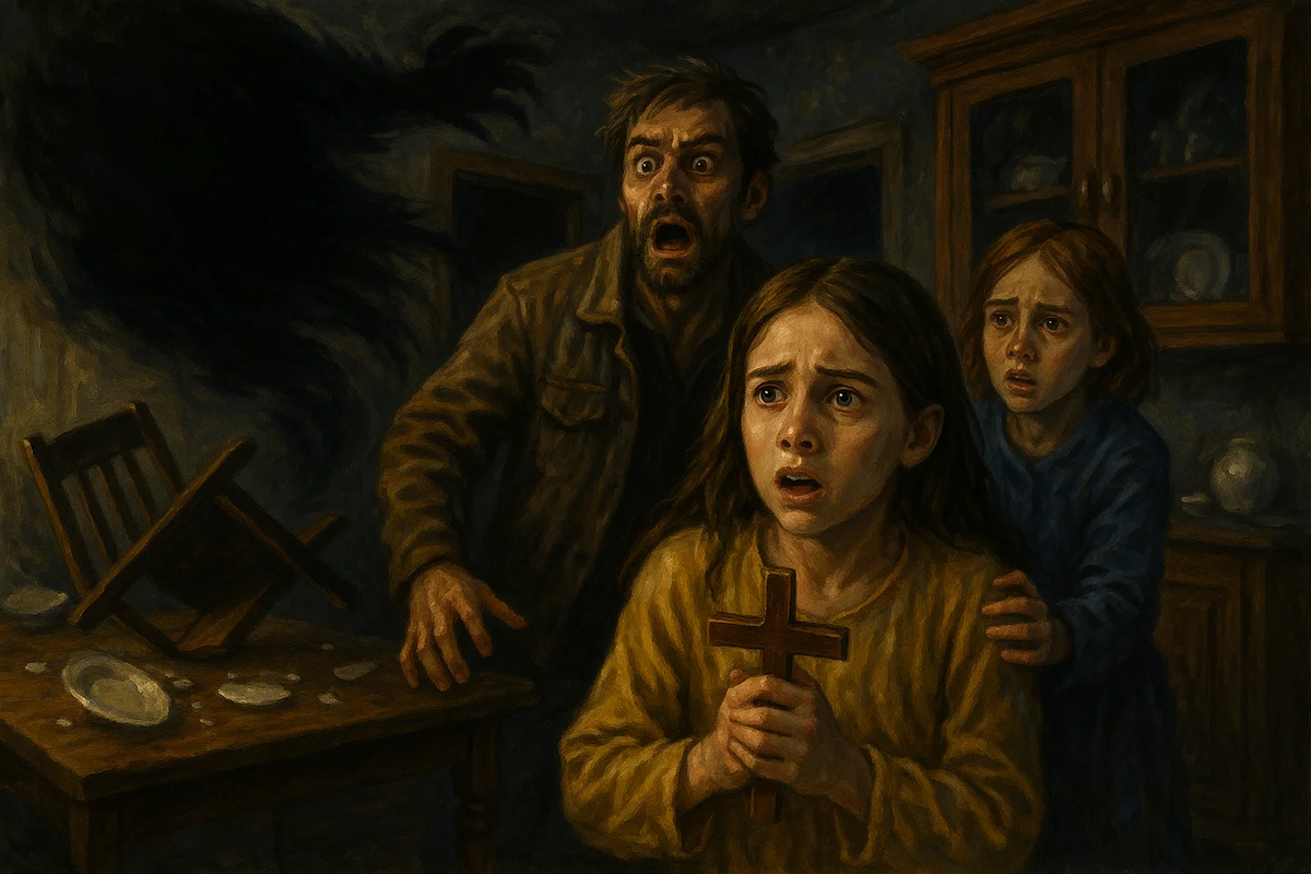 Эта история случилась, когда я была ребёнком. Мои родители пили. Не то чтобы каждый день, но часто. Когда деньги заканчивались, они тащили из дома всё, что можно было продать. Иногда наступали "просветы" — отец находил работу, мать переставала плакать по ночам, и казалось, что жизнь налаживается. Но это было ненадолго. Вскоре нищета догнала нас снова. Мама продала квартиру, и мы переехали в старый дом в городе. Но и его пришлось продать — попойки родителей не оставили нам выбора. В итоге мы оказались в деревне, в государственном доме на отшибе. За домом была полянка, за ней — речка, а за речкой — старое кладбище и тёмный лес. Дом был ветхий, с облупившейся краской и скрипучими половицами. Первое, что меня напугало, — огромные чёрные крысы. Они шныряли по ночам, их когти царапали пол, а глаза блестели в темноте, как угольки. Мы травили их, ставили ловушки, но ничего не помогало. Они возвращались, словно их кто-то звал обратно. А потом началось что-то похуже. По ночам я стала слышать шаг