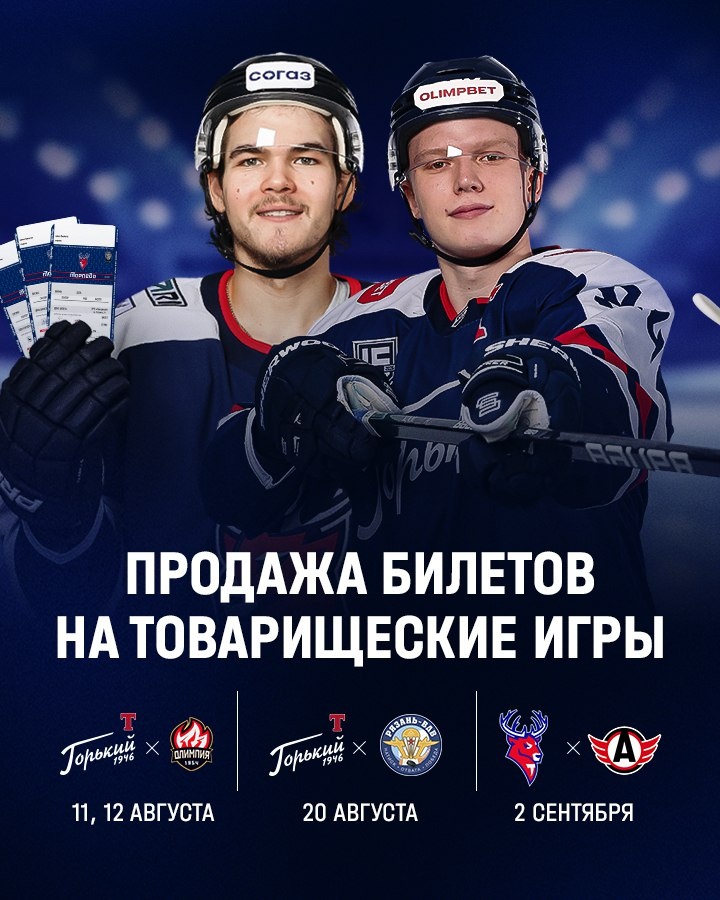 🎟 Билеты уже в продаже! Предсезонка стартует — встречаемся на трибунах «Нагорного»! 📅 11–12 августа «Торпедо-Горький» — «Олимпия» 📅 20 августа «Торпедо-Горький» — «Рязань ВДВ» 📅 2 сентября «Торпедо» — «Автомобилист» 🏟 Все игры пройдут в Нижнем Новгороде на льду КРК «Нагорный». 🎫 Билеты доступны онлайн: https://hctorpedo.ru/tickets/ Также в кассах арены в дни матчей. 🔥 Поддержи команду и ощути хоккейную атмосферу этим летом!