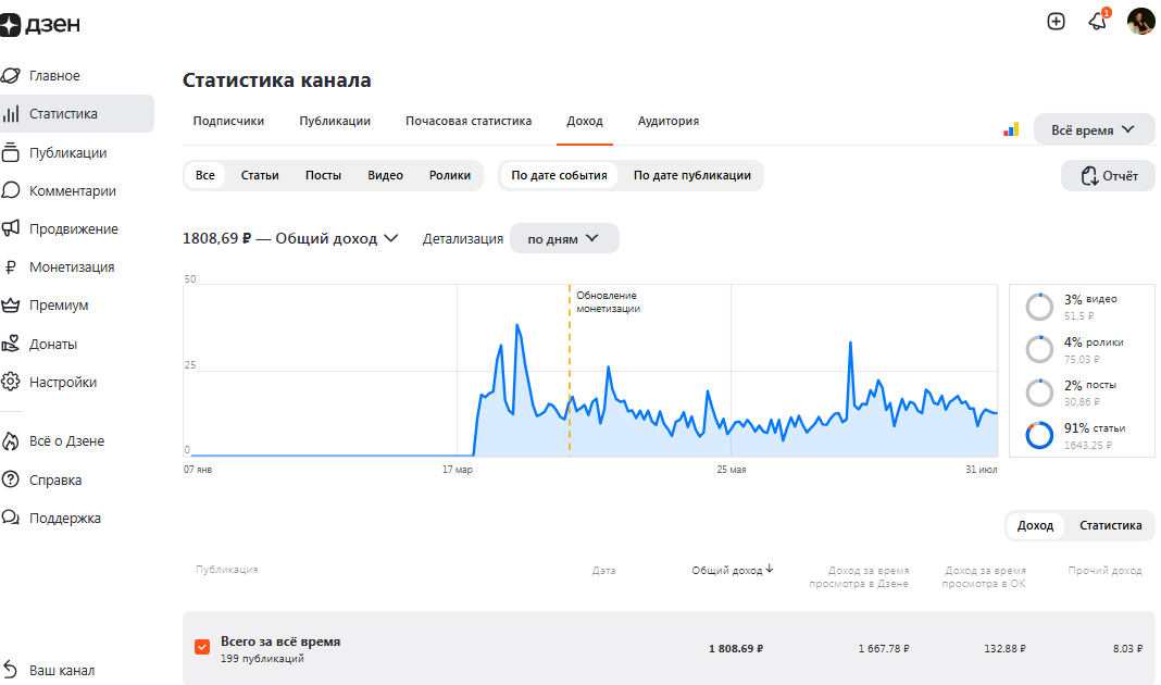Отчет о канале. Сколько заработано на Дзен. Деньги капают и без публикаций.