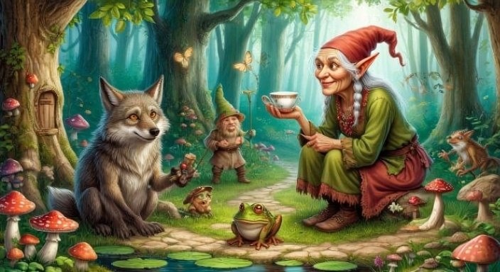 Волк сделал круг почёта, чтобы показать: он вовсе не против прогуляться — просто… никого гонять не надо. Гномы в расцветках фиолетовых грибов построили мост через ручей без надобности, а Лягушка устроила конкурс кваканий, чтобы проверить, кто круче в битбоксе.