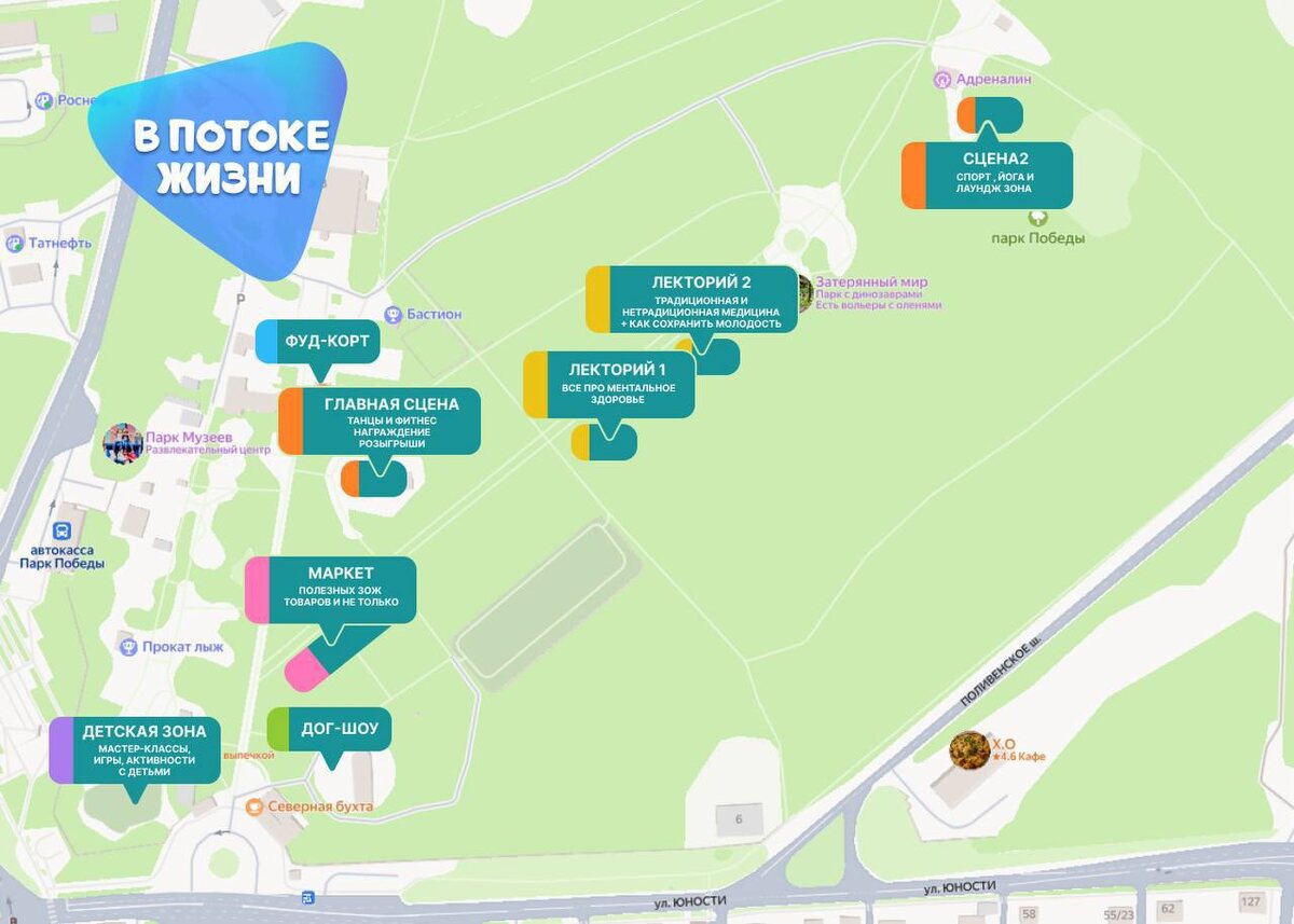 В ответ на пост Сегодня в Парке победы стартовал фестиваль «В потоке жизни» ✨ С программой можете ознакомиться в посте выше, а чтобы не потеряться в локациях, ловите карту 🗺️