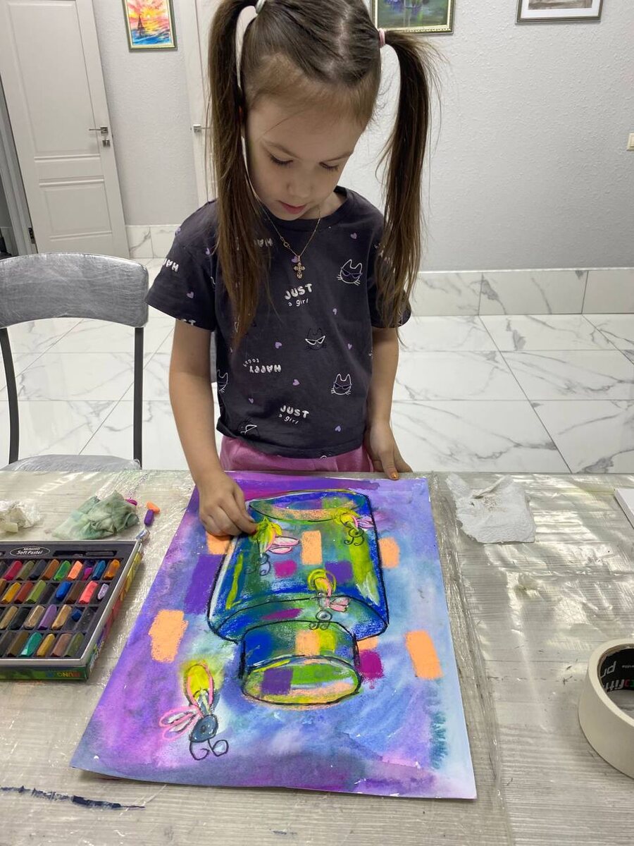 ✨ Яркое творчество наших юных художников! ✨ Сегодня на занятии мы создавали волшебство — светлячков в банке! 🔥🫙 Ребята погрузились в мир мягких пастельных тонов и нежных акварельных переливов, чтобы оживить эти чудесные огоньки. Каждая работа получилась по-настоящему живой — кто-то добавил звёздное небо, кто-то придумал свой сказочный лес, а у кого-то светлячки переливаются всеми цветами радуги! 🌈 Творчество — это всегда магия, и сегодня мы в этом ещё раз убедились! 💫