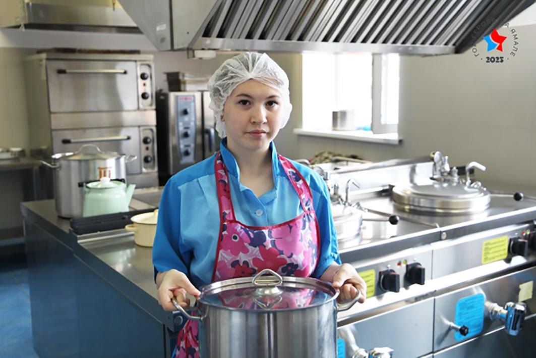 Когда увлечение перерастает в профессию Выпускница Горковской «Доброшколы» Евгения Витязева кормит завтраками и обедами воспитанников «Оленёнка» Во время учёбы в старших классах Горковской коррекционной школы девушка параллельно освоивала профессию помощника повара и успешно сдала экзамен. Это стало возможным благодаря заключённому соглашению между образовательным учреждением и Ямальским многопрофильным колледжем. С 2022 года ученики школ-интернатов Шурышкарского района могут освоить востребованные профессии: помощник повара, столяр, швея, слесарь-сантехник. После завершения обучения ребята получают документ, подтверждающий квалификацию. Евгения призналась, что выбрала это направление, чтобы просто научиться готовить. Занятия в «Доброшколе» стали для неё первым шагом к самостоятельности и любимому делу. – Нас на курсах учили готовить разные блюда: салаты, супы, – рассказывает девушка. – Учили готовить по технологическим картам. Вот всё это пригодилось здесь. Я очень люблю готовить,