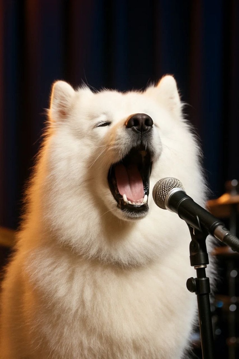 Музыканты и похожие на них породы собак. 5. Вокалист — самоед. Белый, сияющий, обожает быть в центре внимания. Всех любит и хочет, чтобы любили его. Иногда воет. Нарочно. Цитата: «Смотри на меня. Слушай. Аплодируй». Классные микрофоны для классных вокалистов.