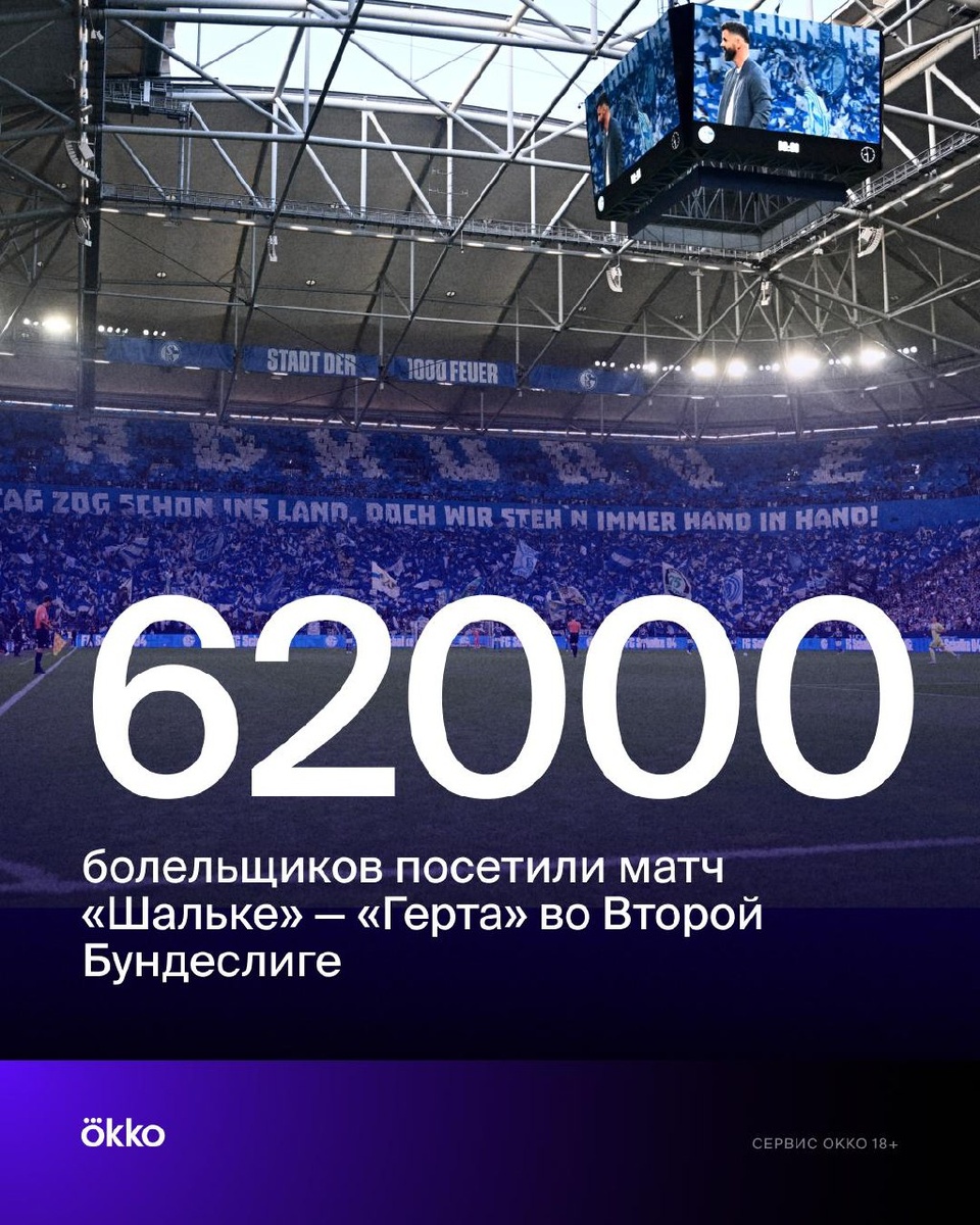 В ответ на пост И не забываем про фанатов из Второй Бундеслиги. Болельщики «Шальке» — лучшие 👏 На дебютный матч сезона против «Герты» пришли 62000 человек. Это солдаут для «Фельтинс-Арены». ❤️ — невероятная поддержка трибун!