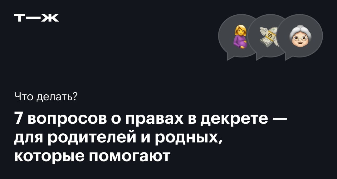 😮 Может ли отец оформить отпуск по уходу за ребенком и продолжить работать? 😫 Как быть, если за время моего декрета сократили ставку? 😢 Сколько мне заплатят, если уволят, когда я буду беременна? 😒 Может ли работодатель уменьшить зарплату, если женщина вышла из декретного отпуска? Пока родители ждут пополнения или ухаживают за малышом, их трудовые права защищает закон. Отвечаем на сложные вопросы о правах родителей на работе и рассказываем, как правильно действовать: https://t-j.ru/d-tg/ask-working-parents #выплаты