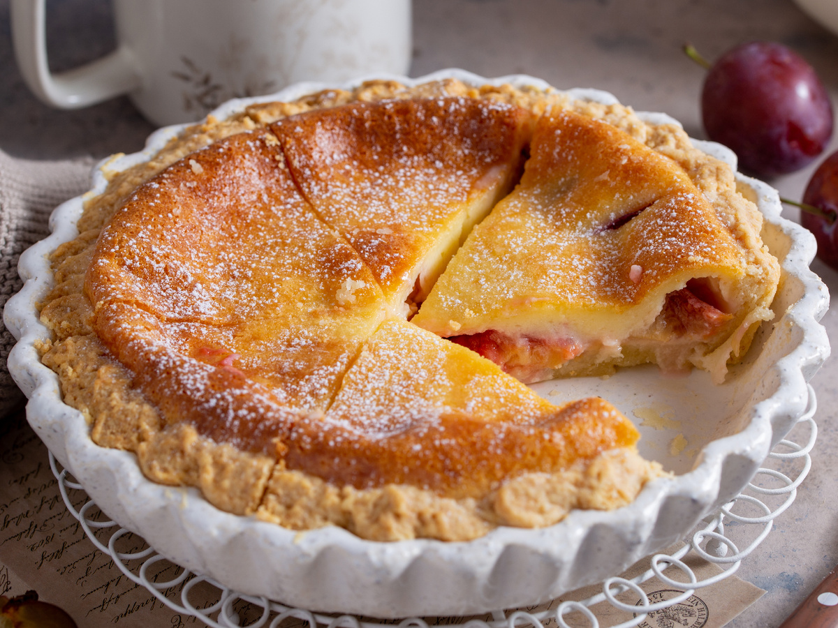 Ни разу не подвёл: нежный пирог с кремовой заливкой и сочными сливами