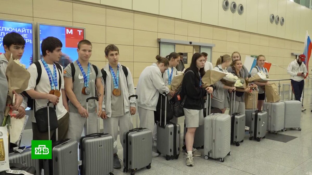 [ Смотреть видео на сайте НТВ ] Сборная России по тяжелой атлетике вернулась в Москву после триумфального выступления на первенстве Европы. В Мадриде завершился чемпионат среди юношей и девушек до 15 и 17 лет. Наши спортсмены завоевали 14 медалей — шесть золотых, три серебряных и пять бронзовых. Сегодня утром чемпионов в аэропорту встречали с цветами и флагами. Варвара Кузьминова, победительница юношеского чемпионата Европы по тяжелой атлетике: «Эмоции конечно переполняют. Это мой второй международный старт, новый опыт». Евгений Бутузов, бронзовый призер юношеского чемпионата Европы по тяжелой атлетике: «Наша команда выступила отлично, достойно показала себя. Все выступили на пятерку и завоевали медали, практически все». Сборная России заняла второе место в общекомандном зачете, уступив только Турции. [ Смотреть видео на сайте НТВ ]