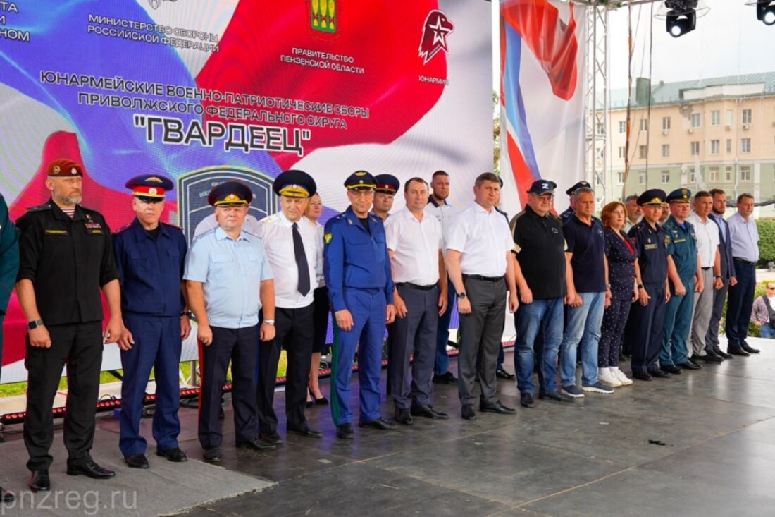 На площади им. Ленина в Пензе состоялось открытие 11-х юнармейских военно-патриотических сборов. В 2025 году «Гвардеец» собрал рекордные за всю историю сборов 18 команд из 360 человек. В Пензу приехали представители 14 регионов ПФО, Донецкой и Луганской Народных Республик, Запорожской области. Впервые участие в сборах принимает команда из Брестской области Республики Беларусь. «Идея пригласить белорусских ребят родилась на «Гвардейце» в прошлом году. Подумали, что будет здорово, если юнармейцы из Пензенской области встретятся со своими сверстниками, которые тоже увлечены спортом и связывают свою судьбу с защитой Отечества», — пояснил губернатор. На церемонию открытия прибыли заместители полномочного представителя президента РФ в ПФО Олег Машковцев и Александр Тихонов, Герои России Расим Баксиков, Александр Белоглазов, Олег Лобунец, Никита Палазник, заместитель командующего Военно-транспортной авиации России Дмитрий Сухоручкин. Также присутствовали представители правоохранительных, зако