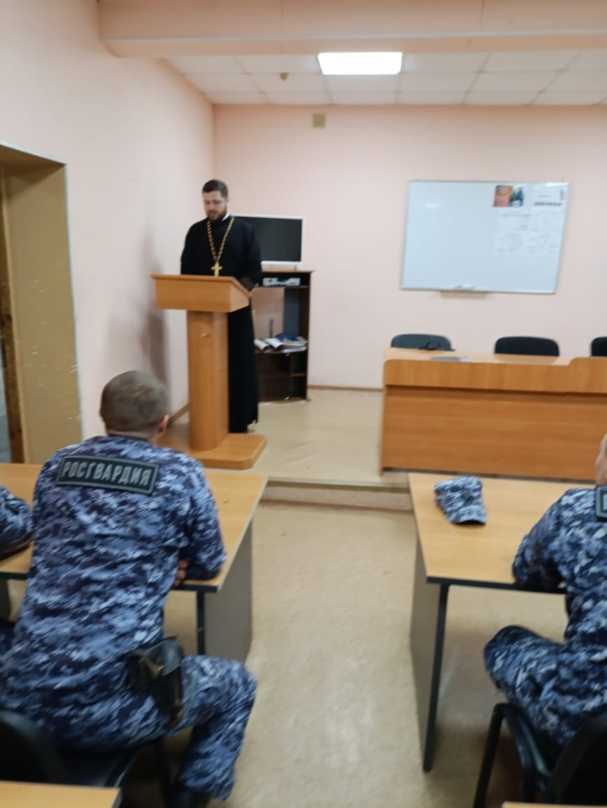 Отец Тимофей провел беседу с сотрудниками Росгвардии на тему: «Святой равноапостольный князь Владимир», рассказал об истории принятия православной веры на Руси и о значении Крещения для народа и государства.